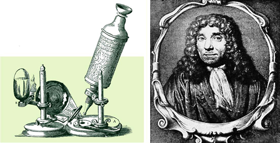 图1-2 A. van Leeuwenhoek的显微镜(图片来自http://www.arsmachina.com) 6. 1812 苏格兰人D. Brewster 发明油浸物镜,并改进了体视显微镜。 7. 1886 德国人Ernst Abbe 发明复消差显微镜,并改进了油浸物镜,至此普通光学显微镜技术基本成熟。 8. 1932 德国人M. Knoll和E. A. F. Ruska描述了一台最初的电子显微镜,1940年美国和德国制造出分辨力为0.2nm的商品电镜。 9. 1932 荷兰籍德国人F. Zernike成功设计了相差显微镜(phasecontrast microscope) ,并因此获1953年诺贝尔物理奖。 10. 1981瑞士人G. Binnig和H. RoherI在BM苏黎世实验中心(Zurich Research Center)发明了扫描隧道显微镜而与电镜发明者Ruska同获1986年度的诺贝尔物理学奖。 二、细胞学说在十九世纪以前许多学者的工作都着眼于细胞的显微结构方面,从事形态上的描述,而对各种有机体中出现细胞的意义一直没有作出理论的概括,直到19世纪30年代德国人施莱登Matthias Jacob Schleiden 、施旺Theodar Schwann提出:一切植物、动物都是由细胞组成的,细胞是一切动植物的基本单位。这一学说即“细胞学说(Cell Theory)”,在19世纪已有不少科学家的工作对细胞学说的创立做出了很大的贡献,如: 1. Jean-Baptiste de Lamarck (1744-1829),获得性遗传理论的创始人,法国退伍陆军中尉,50岁成为巴黎动物学教授,1909年他认为只有具有细胞的机体,才有生命。“It has been recognized for a long time that the membranes which form the envelopes of the brain,of the nerves,of vessels,of all kinds of glands,of viscera,of muscles and their fibers,and even the skin of the body are in general the productions of cellular tissue。 But no one,so far as I know, has yet perceived that cellular tissue is the general matrix of all organization and that without this tissue no living body would be able to exist,nor could it have been formed。” 2. Charles Brisseau Milbel(1776-1854),法国植物学家,1802年认为植物的每一部分都有细胞存在,“the plant is wholly formed of a continuous cellular membranous tissue。Plants are made up of cells,all parts of which are in continuity and form one and the same membranous tissue。”。 3. Henri Dutrochet (1776-1847),法国生理学家,1824年进一步描述了细胞的原理,他认为 “All organic tissues are actually globular cells of exceeding smallness,which appear to be united only by simple adhesive forces; thus all tissues, all animal (and plant) organs, are actually only a cellular tissue variously modified。This uniformity of finer structure proves that organs actually differ among themselves merely in the nature of the substances contained in the vesicular cells of which they are composed” 。 4. Matthias Jacob Schleiden(1804-1881),德国植物学教授[1],1938年发表“植物发生论”(Beiträge zur Phytogenesis),认为无论怎样复杂的植物都有形形色色的细胞构成。他认识到了Brown发现细胞核的重要意义,这一点Brown本人并未做到,他试图重建细胞发育的过程,为此他聪明地选择了胚胎细胞作为他研究的起点,他还在细胞中发现了核仁。 5. Theodor Schwann(1810-1882),德国解剖学教授,一开始就研究Schleiden的细胞形成学说,他完全接受了这个学说,并把它扩展为所有生命现象的起源和基础的一般理论。他把Schleiden在植物中的发现应用到动物中去,并于1838年提出了“细胞学说”(Cell Theory)这个术语;1939年发表了“关于动植物结构和生长一致性的显微研究”(Mikroskopische Untersuchungen über die Übereinstimmung in der Struktur und dem Wachstum der Tiere und Pflanzen)。因此细胞学说的创立被认为归功于Schleiden和Sehwann两个人,而且年份也被定到1839年。 Schwann提出: 1) 有机体是由细胞构成的; 2) 细胞是构成有机体的基本单位。 1855 德国人R. Virchow 提出“一切细胞来源于细胞”(omnis cellula e cellula)的著名论断,进一步完善了细胞学说。 把细胞作为生命的一般单位,以及作为动植物界生命现象的共同基础的这种概念立即受到了普遍的接受。恩格斯将细胞学说誉为19世纪的三大发现之一。 三、细胞生物学的发展19世纪后期显微技术的改进,生物固定技术(如:Fleming 1882,1884;Canoy 1886)和染色技术的出现极大的方便了人们对细胞显微结构的认识,各种细胞器相继被发现,20世纪30年代电子显微镜技术的问世,是细胞形态的研究达到了空前的高潮。20世纪50年代分子生物学的兴起,推动细胞生物学的研究进入了分子水平。