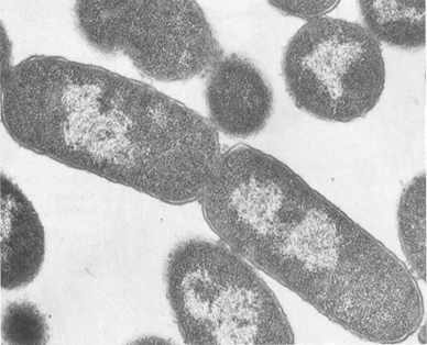 图3-5 大肠杆菌TEM照片,核区为低电子密度区
