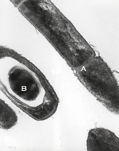 Bacillus anthracis的芽孢(B)