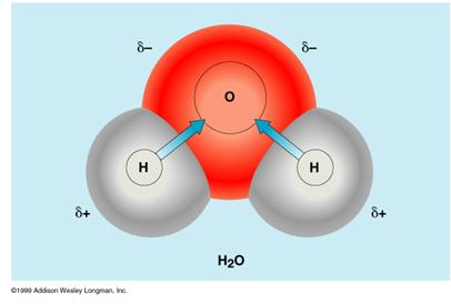 由于水分子是偶极子,因而在水分子之间和水分子与其他极性分子间可建立弱作用力的氢键。在水中每一氧原子可与另两个水分子的氢原子形成两个氢键。氢键作用力很弱,因此分子间的氢键经常处于断开和重建的过程中。