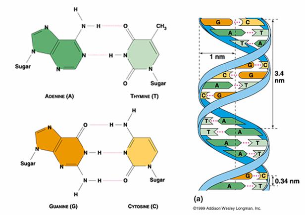 B-DNA:为Watson&Click提出的右手螺旋模型,每圈螺旋10个碱基,螺旋扭角为36度,螺距34A,每个碱基对的螺旋上升值为3.4A,碱基倾角为-2度。