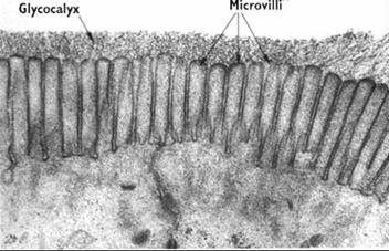 微绒毛的存在扩大了细胞的表面积,有利于细胞同外环境的物质交换。如小肠上的微绒毛,使细胞的表面积扩大了30倍,大大有利于大量吸收营养物质。不论微绒毛的长度还是数量,都与细胞的代谢强度有着相应的关系。例如肿瘤细胞,对葡萄糖和氨基酸的需求量都很大,因而大都带有大量的微绒毛。