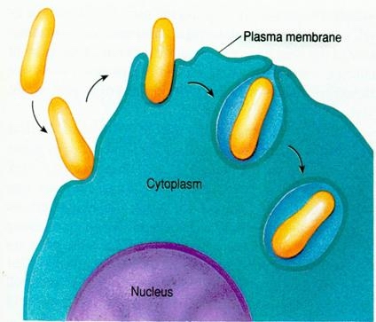 细胞内吞较大的固体颗粒物质(图5-13),如细菌、细胞碎片等,称为吞噬作用(phagocytosis)。吞噬现象是原生动物获取营养物质的主要方式,在后生动物中亦存在吞噬现象。如:在哺乳动物中,中性颗粒白细胞和巨噬细胞具有极强的吞噬能力,以保护机体免受异物侵害。