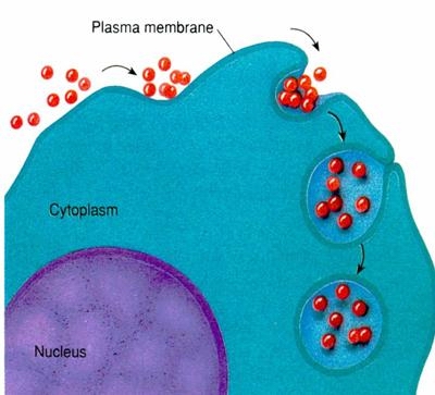 在动物组织中,有的细胞通过内吞和外排相偶联,在细胞的一侧形成胞饮小泡穿越细胞质,另一侧使小泡中的物质释放出去。如:肝细胞从血窦中吸收免疫球蛋白A(IgA),通过穿胞运输输送到胆微管;大鼠中,母鼠血液中抗体经穿胞运输进入乳汁。