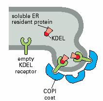 负责回收、转运内质网逃逸蛋白(escaped proteins)返回内质网(图6-6、7)。起初发现于高尔基体碎片,在含有ATP的溶液中温育时,能形成非笼形蛋白包被的小泡。进一步的研究发现这种衣被蛋白复合体包含多达7种肽链。