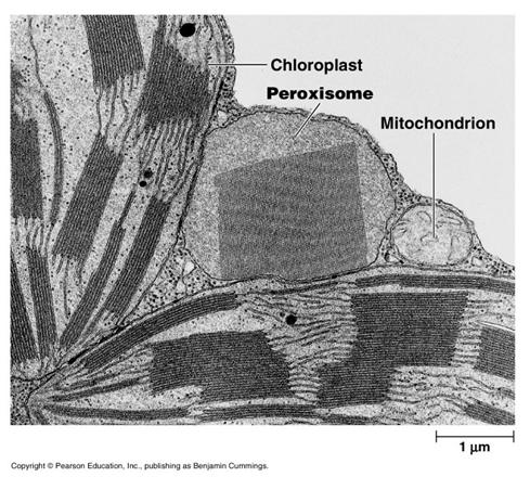 在植物中过氧化物酶体主要有:①参与光呼吸作用,将光合作用的副产物乙醇酸氧化为乙醛酸和过氧化氢,②在萌发的种子中,进行脂肪的β-氧化,产生乙酰辅酶A,经乙醛酸循环,由异柠檬酸裂解为乙醛酸和琥珀酸,加入三羧酸循环,因涉及乙醛酸循环,又称乙醛酸循环体(glyoxysome)。