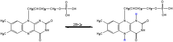 黄素蛋白:含FMN(图7-5)或FAD(图7-6)的蛋白质,每个FMN或FAD可接受2个电子2个质子。呼吸链上具有FMN为辅基的NADH脱氢酶,以FAD为辅基的琥珀酸脱氢酶。