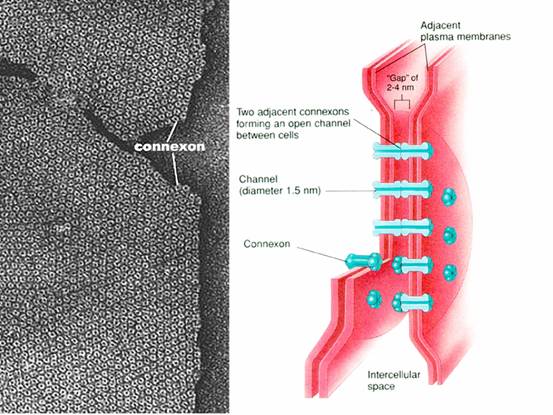 是细胞间的直接通讯方式(图8-3)。两个相邻的细胞以连接子(connexon)相联系。连接子中央为直径1.5nm的亲水性孔道。允许小分子物质如Ca2+、cAMP通过,有助于相邻同型细胞对外界信号的协同反应,如可兴奋细胞的电耦联现象。