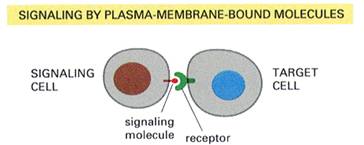 direct contact between cells or by means of chemical signals carried