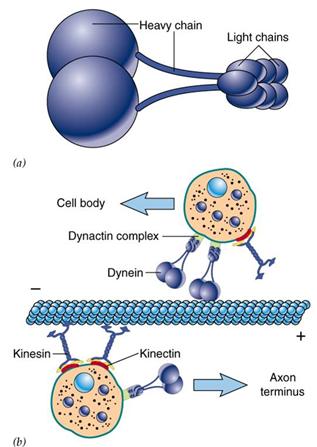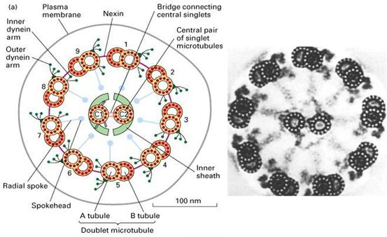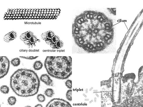 纤毛和鞭毛的运动是依靠动力蛋白(dynein)水解ATP,使相邻的二联微管相互滑动。有一种男性不育症是由于精子没有活力造成的。这种病人同时还患有慢性支气管炎,主要是因为是鞭毛和纤毛没有动力蛋白臂,不能排出侵入肺部的粒子。