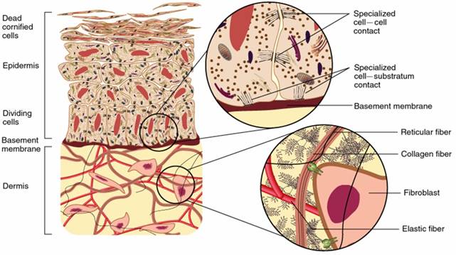 上皮组织、肌组织及脑与脊髓中的ECM含量较少,而结缔组织中ECM含量较高。细胞外基质的组分及组装形式由所产生的细胞决定,并与组织的特殊功能需要相适应。例如,角膜的细胞外基质为透明柔软的片层,肌腱的则坚韧如绳索。细胞外基质不仅静态的发挥支持、连接、保水、保护等物理作用,而且动态的对细胞产生全方位影响。