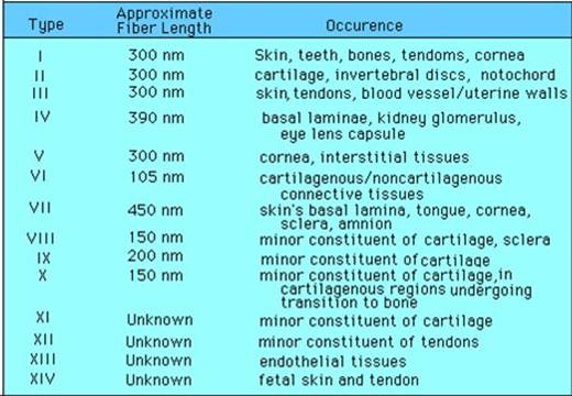 结缔组织、皮肤、软骨、玻璃体、滑液 |