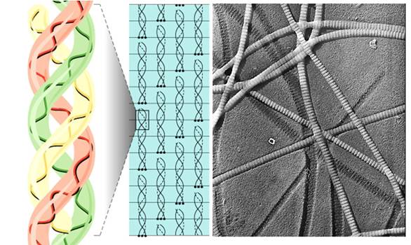 图10-4 胶原的结构(左模式图,右电镜照片)