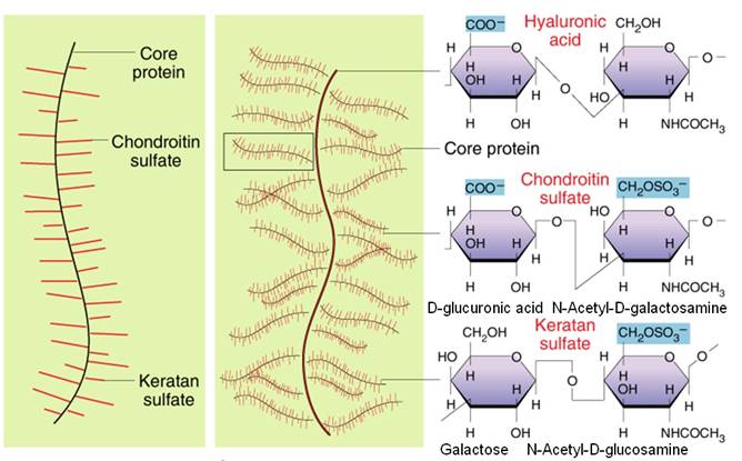 图10-9左,蛋白聚糖;中蛋白聚糖多聚体;右,氨基聚糖