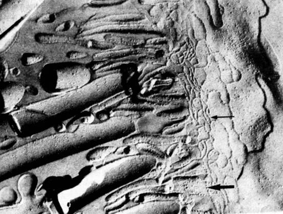 图11-2兔子上皮细胞的紧密连接(冰冻蚀刻)