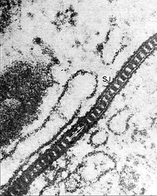 是存在于无脊椎动物上皮细胞的紧密连接(图11-4)。连接蛋白呈梯子状排列,形状非常规则,连接的细胞内骨架成分为肌动蛋白纤维。在果蝇中一种叫做discs-large的蛋白参与形成间壁连接,突变品种不仅不能形成间壁连接,还产生瘤突。
