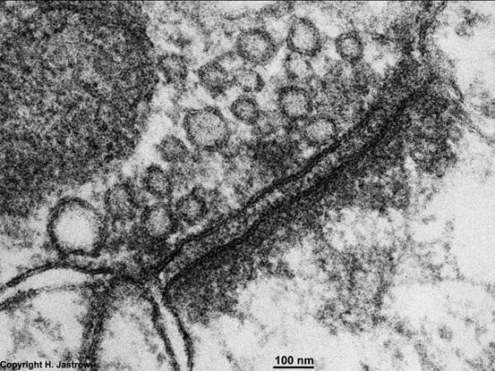 化学突触的结构(具有小囊泡的一侧为突触前膜)