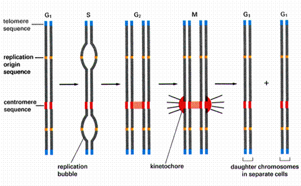 染色体具有3个基本元素(图12-10):①自主复制序列(autonomously replicating DNA sequence, ARS),是DNA复制的起点,酵母基因组含200-400个ARS,大多数具有一个11bp富含AT的一致序列(ARS consensus sequence, ACS);②着丝粒序列(centromere DNA sequence,CEN)