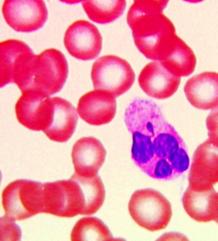 图12-16 白细胞中的巴氏小体(鼓槌状结构)