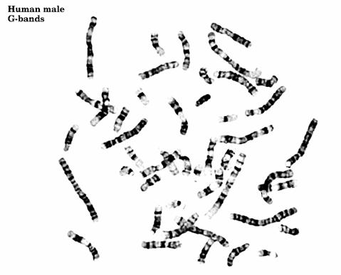 人类G带核型,G带显示的是染色体上富含AT的区域
