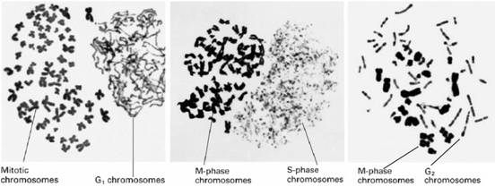 Rao和Johnson(1970、1972、1974)将Hela细胞同步于不同阶段,然后与M期细胞混合,在灭活仙台病毒介导下,诱导细胞融合,发现与M期细胞融合的间期细胞产生了形态各异的早熟凝集染色体(prematurely condensed chromosome,PCC),这种现象叫做早熟染色体凝集(premature chromosome condensation)。