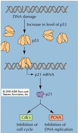 图13-21 P21cip1抑制CDK和PCNA