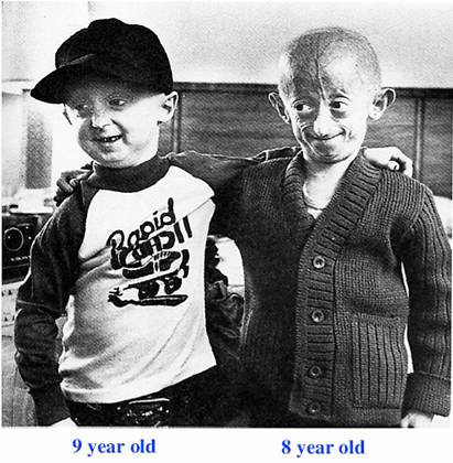正常儿童(左)和婴幼儿早衰症患者(右)